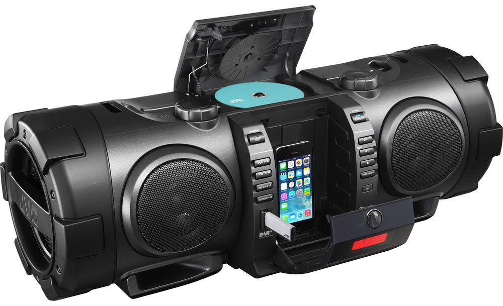 Výkonný přenosný CD systém BoomBlaster s dvojitým zesilovačem pro basy a výšky, výkonný bassreflexový systém, dokovací kolébka s konektorem Lightning pro iPod/iPhone, Bluetooth, výkon 40W, USB port s možností nahrávání hudby, FM a DAB+ Tuner, dálkový ovladač, popruh přes rameno, robustní konstrukce.