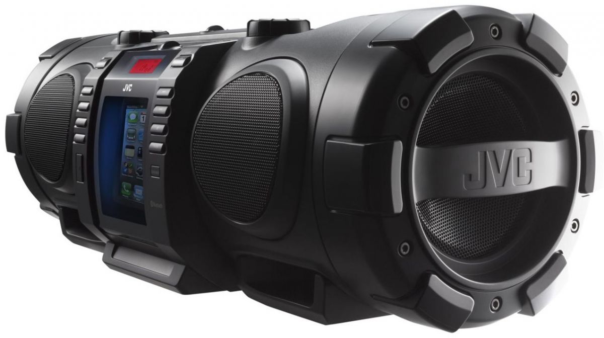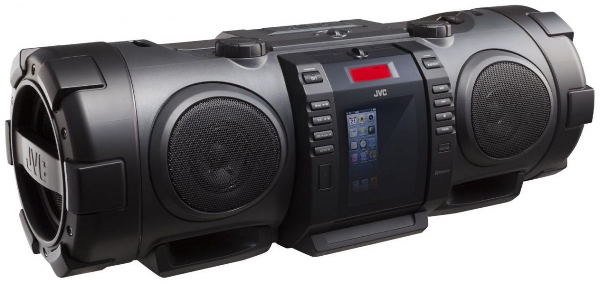 Výkonný přenosný CD systém BoomBlaster s dvojitým zesilovačem pro basy a výšky, výkonný bassreflexový systém, dokovací kolébka s konektorem Lightning pro iPod/iPhone, Bluetooth, výkon 40W, USB port, FM Tuner, dálkový ovladač, popruh přes rameno.