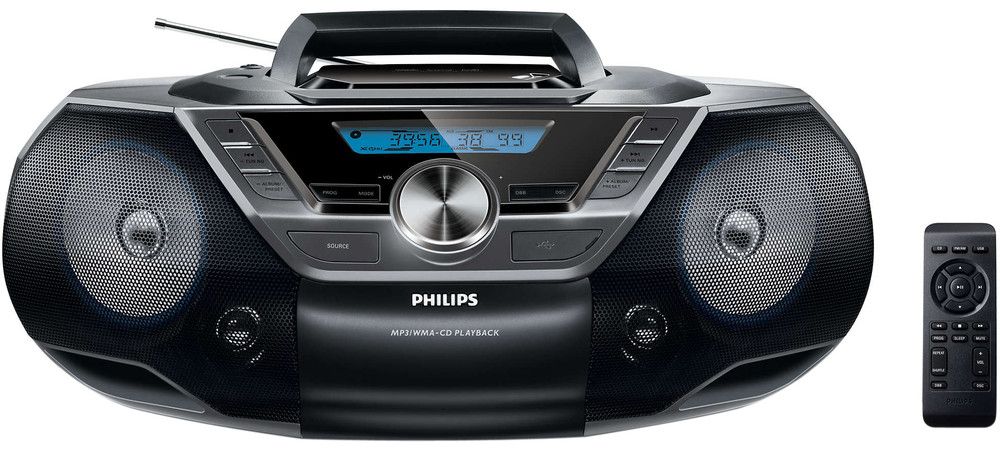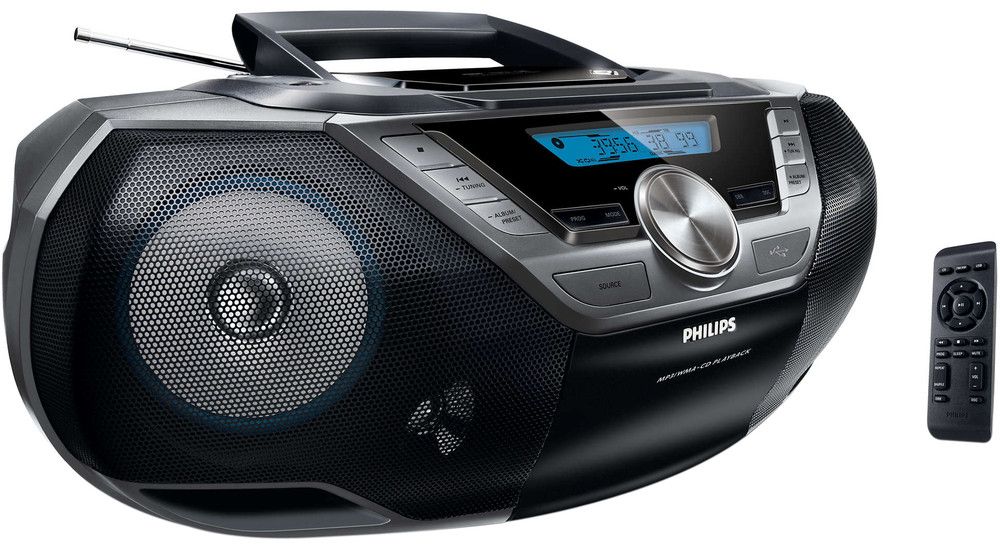 Přenosné rádio s výkonným zvukem díky připojení USB Direct, reproduktorům s konstrukcí Bass Reflex a dálkovým ovladačem.