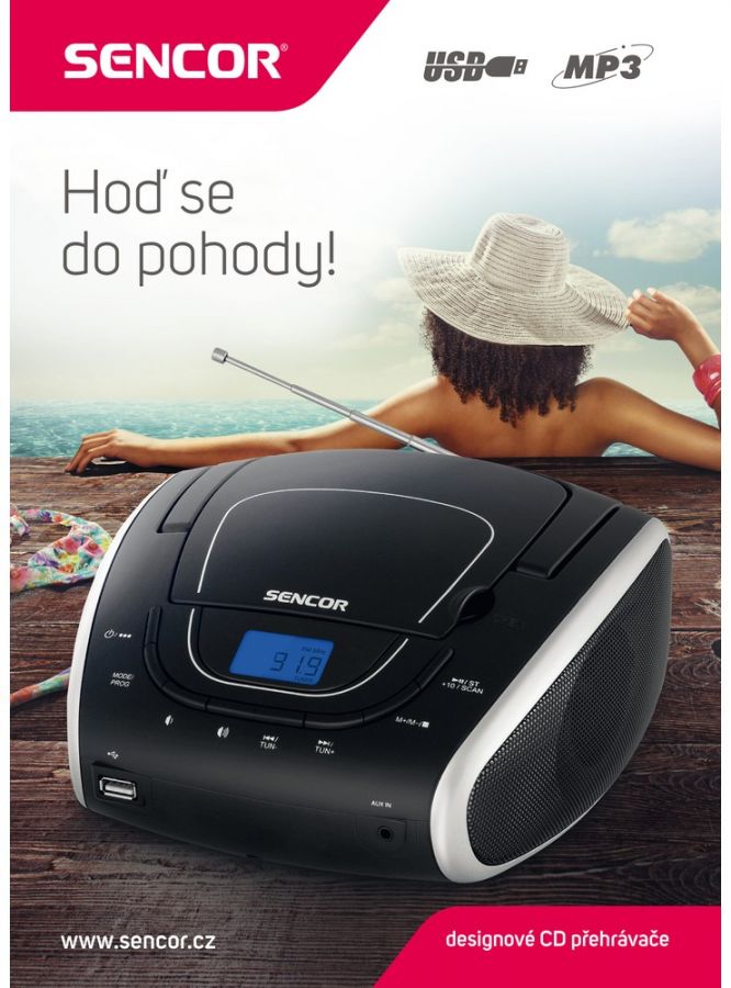 Přenosné FM rádio přehrává CD-R / RW, MP3. Má USB konektor, a vyhledávání, přeskakování, opakování skladeb na CD a USB.