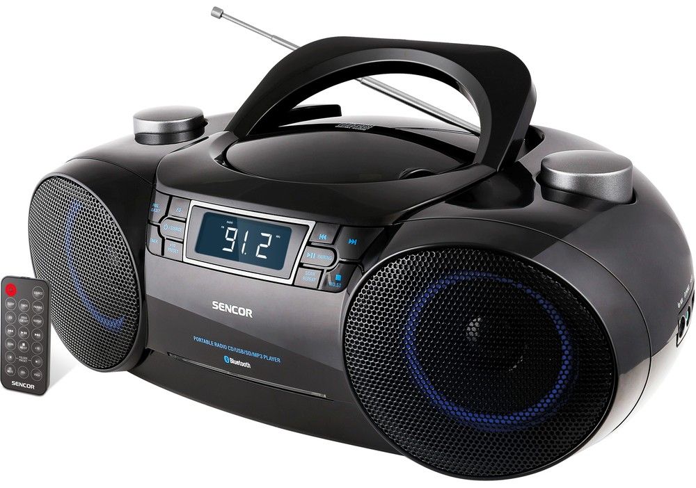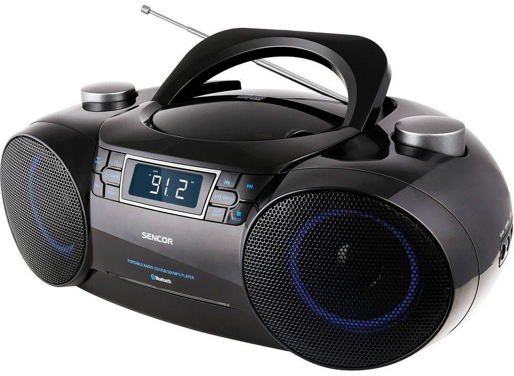 CD přehrávač Boombox s Bluetooth má výstupní výkon 12W RMS (2x 6W) a dálkové ovládání. Přehrává CD-R/RW, Bluetooth, MP3, SD a USB.