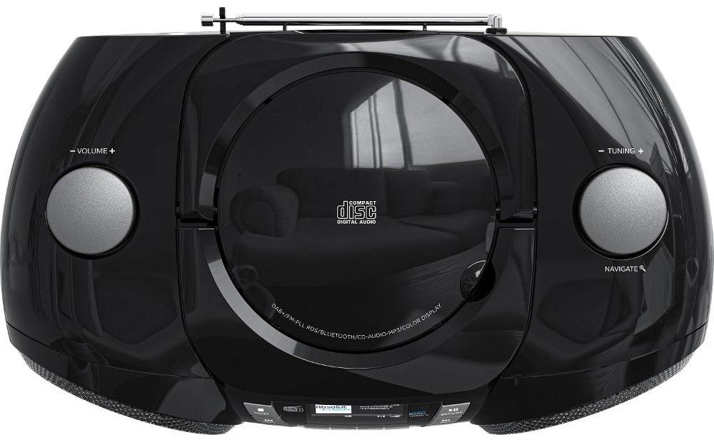 CD přehrávač Boombox s DAB+, Bluetooth, výstupní výkon 16W (2x 8W) a dálkové ovládání.