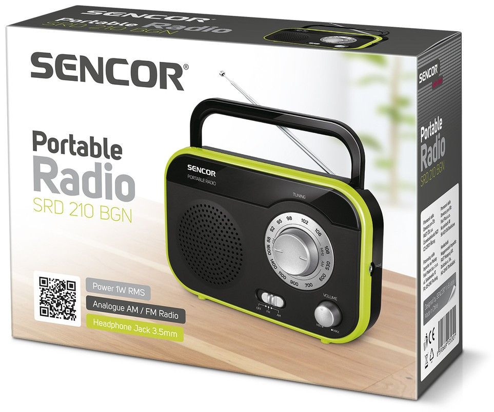 SENCOR SRD210B černáPřenosný radiopřijímač s FM teleskopickou anténou a konektorem 3,5mm pro sluchátka.SRD210B černá536 bez DPH649 Kč