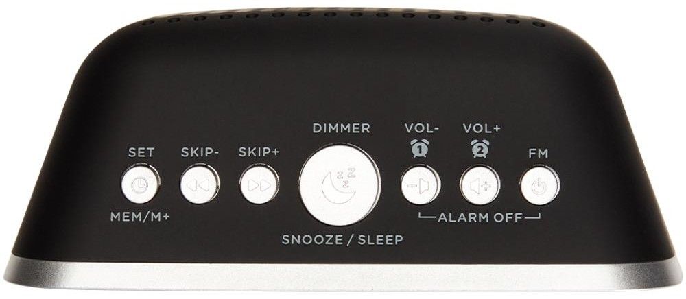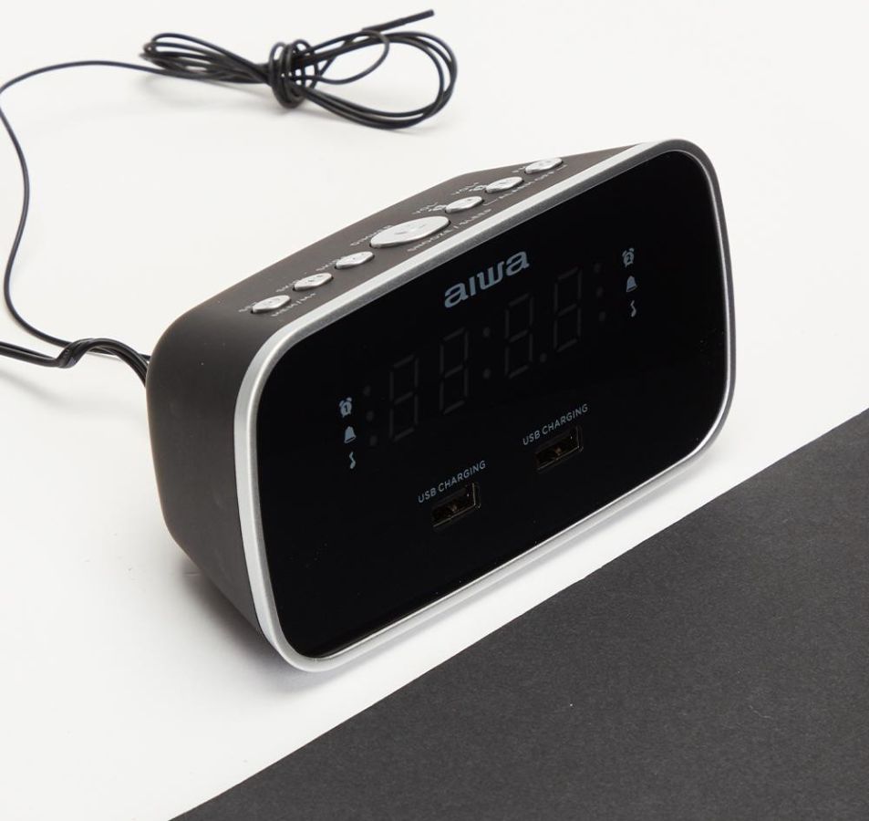 Radiobudík s předním duálním USB pro nabíjení smartphonů a dalších zařízení, digitálním FM tunerem a bílým LED displejem.