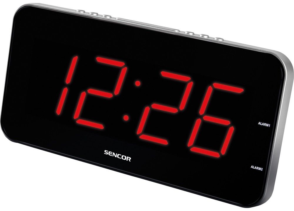 Hodiny se dvěma časy buzení a velkým bílým či červeným LED displejem.