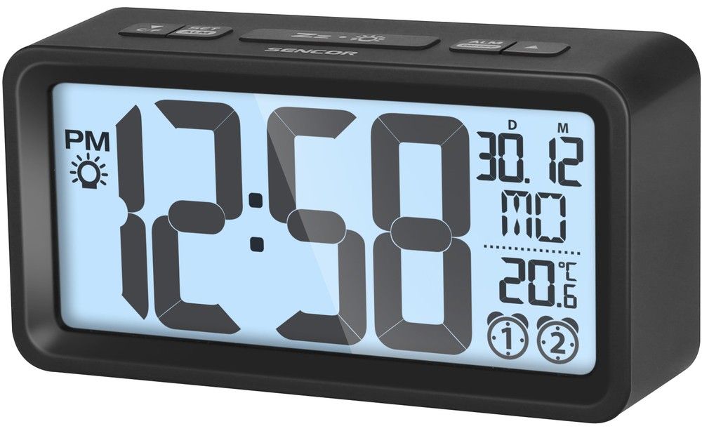 Digitální hodiny s budíkem mají LCD displej s krátkodobým bílým podsvícením, duální alarm s vnitřní teplotu 0°C až +50°C.