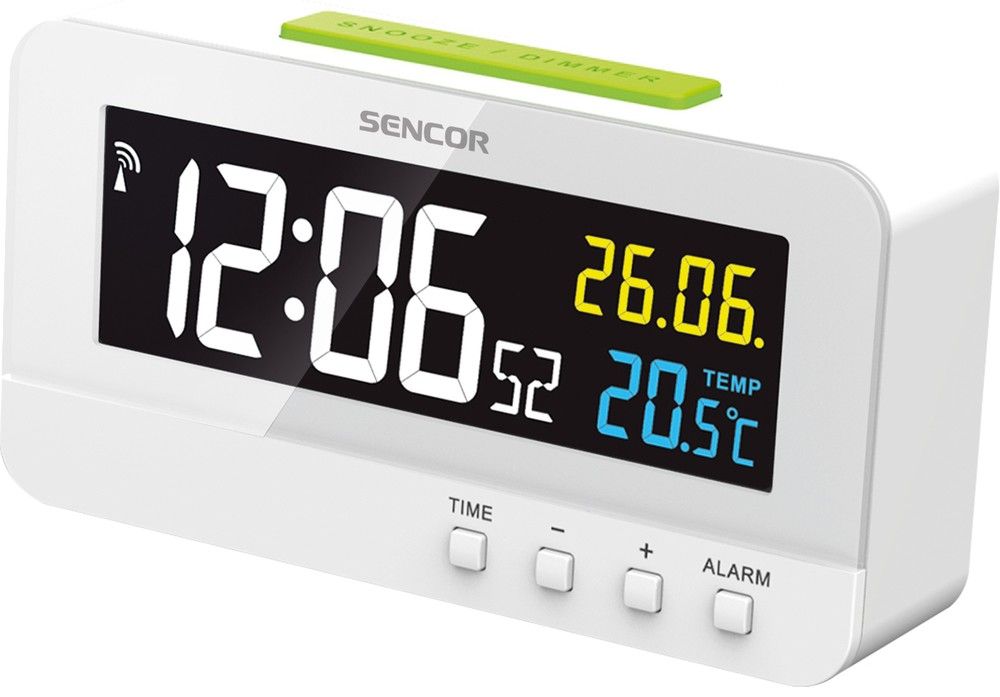 Digitální hodiny s budíkem mají barevný displej s úhlopříčkou 3,4" (8,6 cm), rádiem řízené hodiny a datum pomocí signálu DCF77, zobrazení času, vnitřní teploty a datumu.