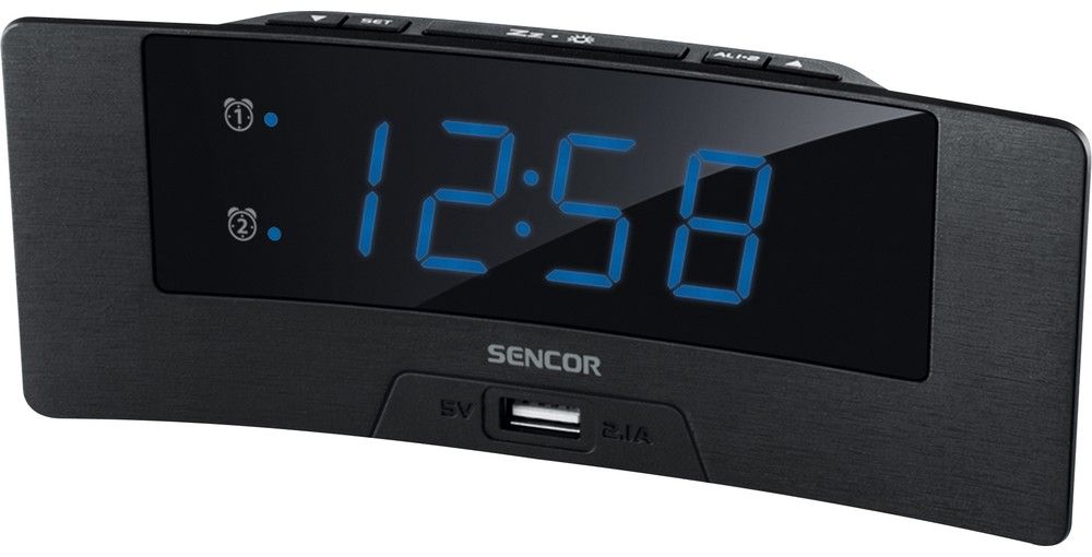 Digitální hodiny s budíkem mají displej s úhlopříčkou 3,2" (8,2 cm), USB nabíječku 5 V / 2,1 A a duální alarm.