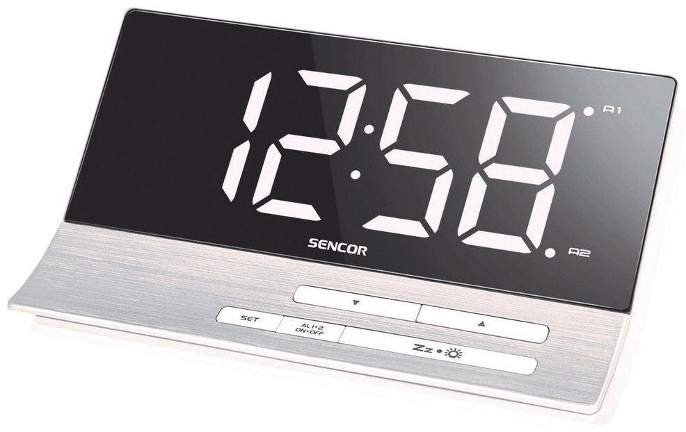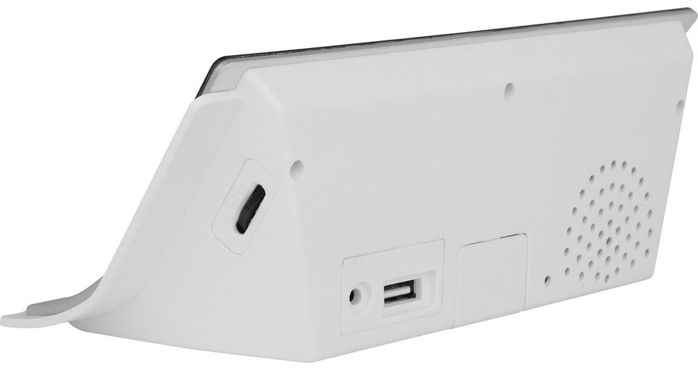 Digitální hodiny s budíkem mají displej s úhlopříčkou 5,1" (13 cm), USB nabíječku 5 V / 2,1 A a funkci stmívání s manuálním nastavením jasu pomocí otočného ovladače.