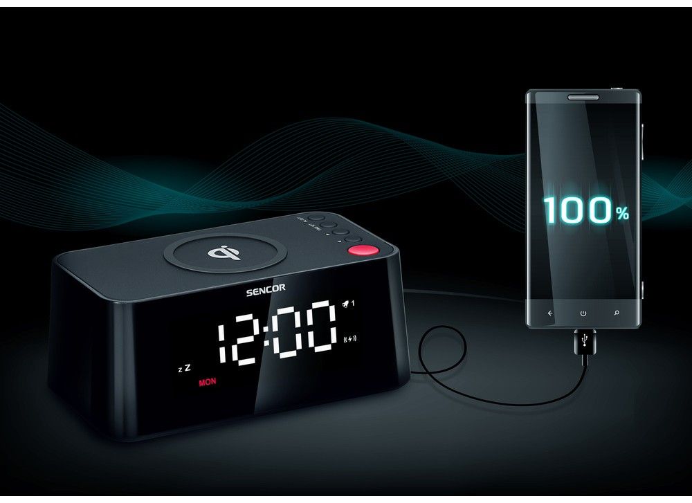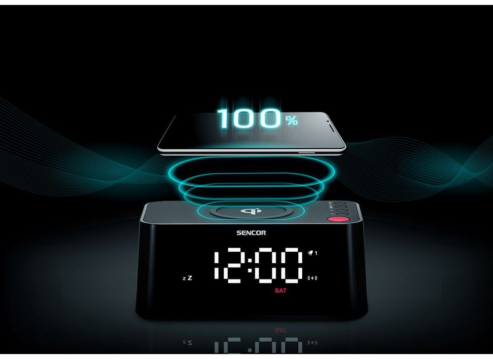 Digitální hodiny s rychlou bezdrátovou nabíječkou, úhlopříčkou 3,9" (10 cm), 6-ti úrovněmi jasu displeje a duálním budíkem.