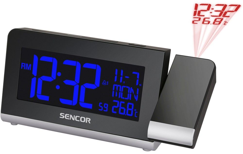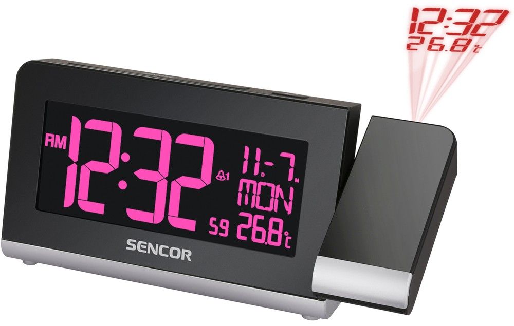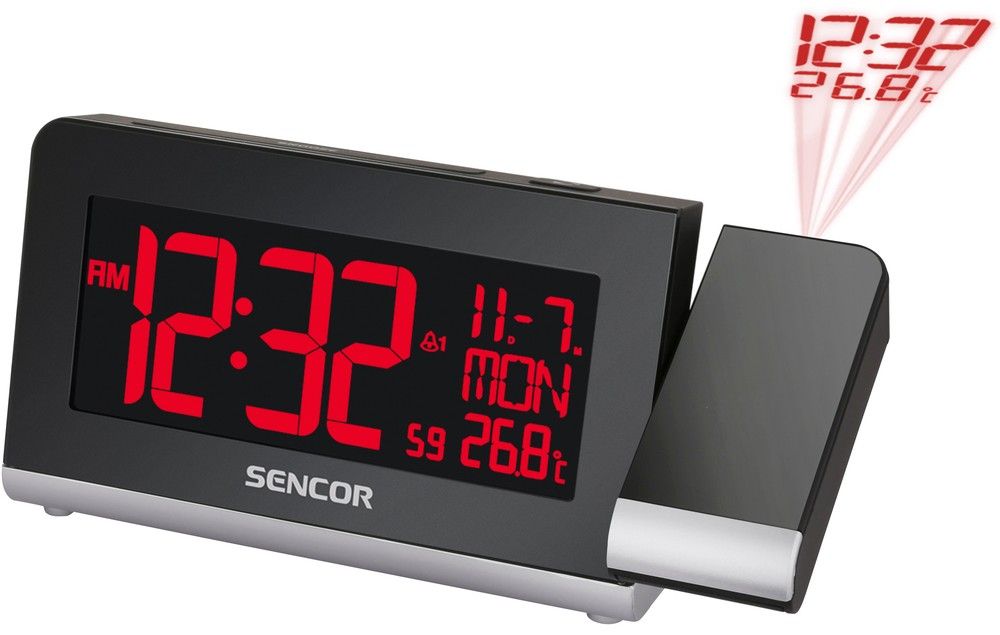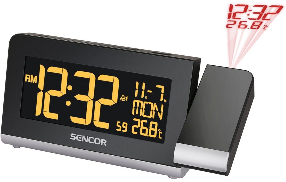 Projekční budík má displej s 256 proměnlivými barvami, zobrazení času, vnitřní teploty, datumu nebo budíku a projekce času a vnitřní teploty.