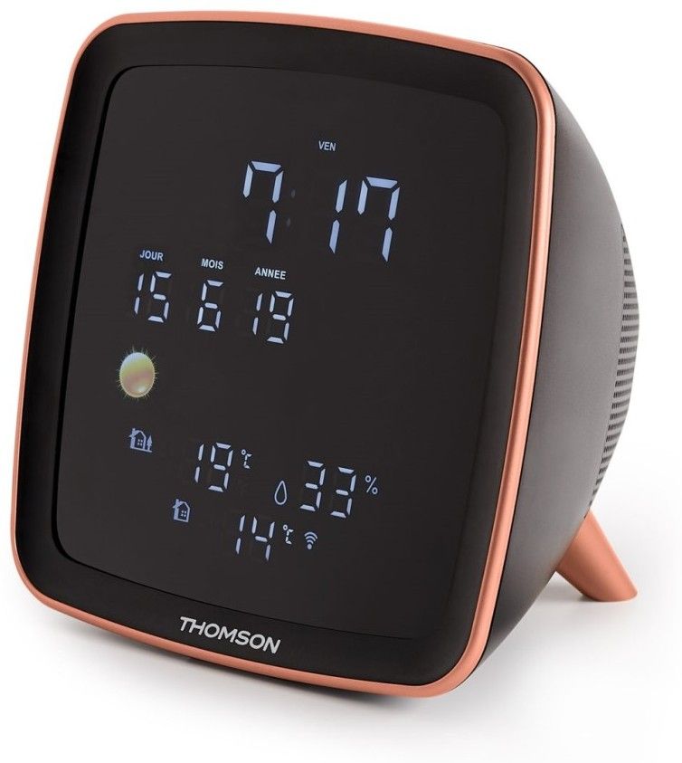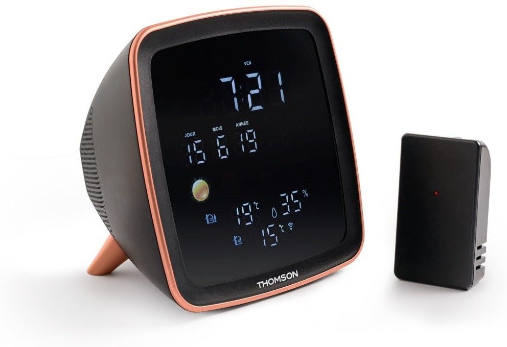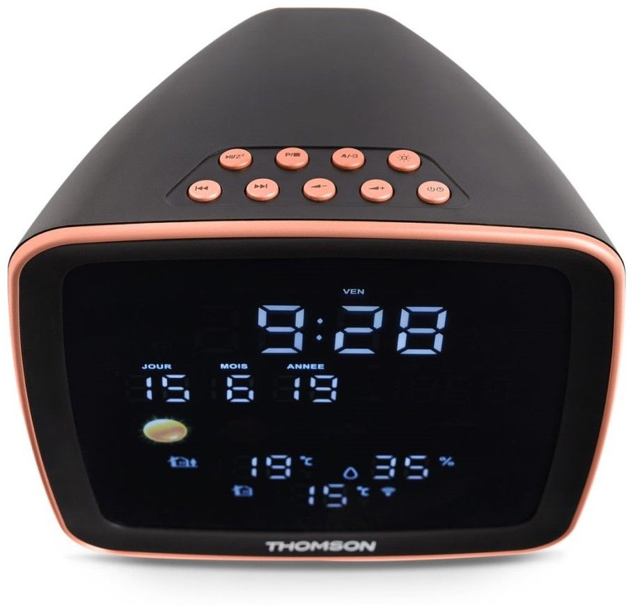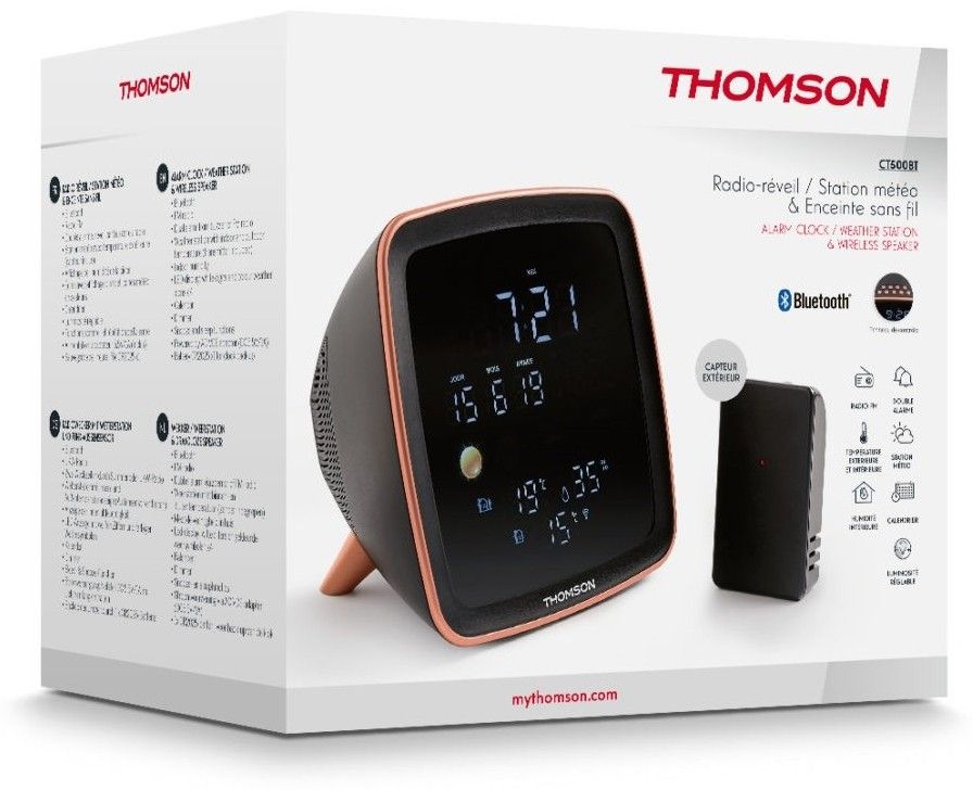 Kompaktní multifunkční a výkonný radiobudík s Bluetooth a meteostanicí Thomson CT500BT. Zazvoní budík a vy jste ještě pod peřinou. Jaká je teplota venku? Stačí se jen podívat na displej Thomson CT500BT a máte jasno. Pusťte si hudbu přes Bluetooth nebo poslouchejte FM rádio, až budete připraveni, zkontrolujte svůj kalendář.