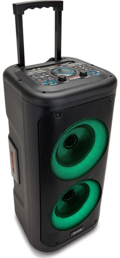 Přenosný Bluetooth party reproduktor s výkonem 350W, USB portem a slotem Micro-SD, FM rádiem a digitálním ECHO pro karaoke.