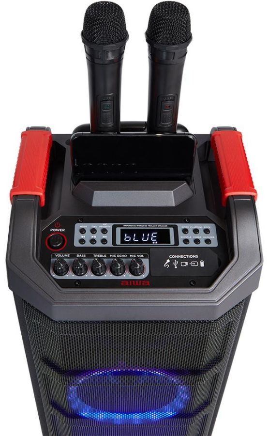 - Vestavěný systém osvětlení párty reproduktorů RGB-LED