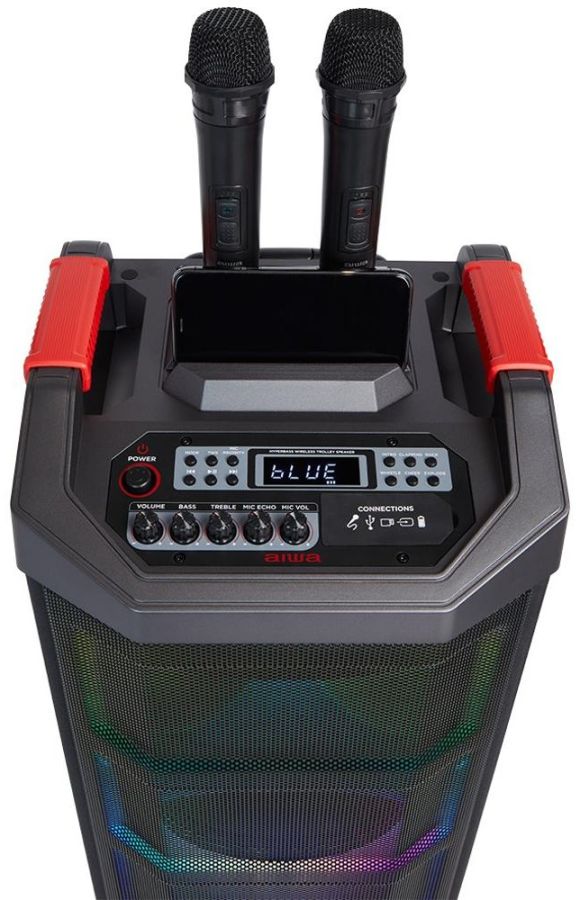 - Vestavěný systém osvětlení párty reproduktorů RGB-LED
