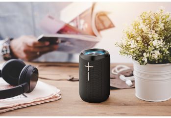 Je nižší, než skleněný půllitr, ale zvukem rozhodně překvapí. Výkon je nečekaně příjemných 15W. Když ale reproduktor s funkcí TWS bezdrátově spřáhnete s dalším BBS 4400 – rozduní se plně prostorový zvuk o síle 30W. K tomu všemu má reproduktor i technologii Power Bass, takže basy jsou vážně hodně výživné a plné