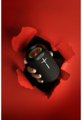 Bluetooth reproduktor stupně krytí IPX7 s technologii TWS umožňující současné připojení dvou reproduktorů, funkce handsfree, funkce světelných efektů a technologie Power Bass.