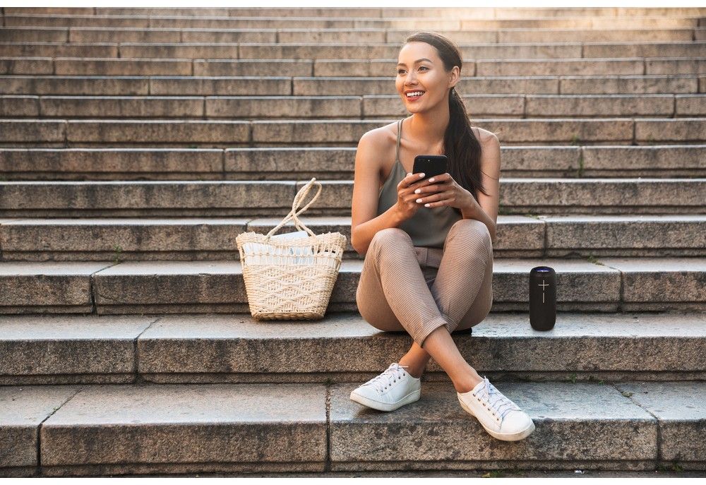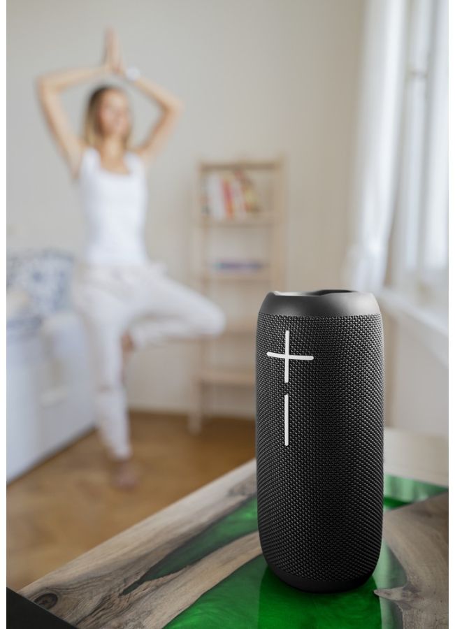 Zkoušet to asi nebudete, ale voděodolnost reproduktoru BBS 5500 je tak super (IPX7), že odolá tekutině, i když je půl hodiny ponořený metr pod hladinu! To v praxi znamená, že ho nezastaví ani průtrž mračen. Navíc je prostě trendy - potažený elegantně černou prémiovou tkaninou.