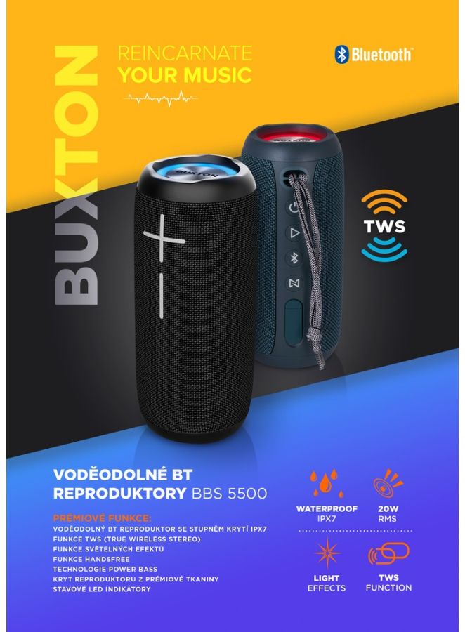 Na první pohled vážně těžko uvěřit, jak dobře tenhle kompaktní reproduktor hraje. A to ho ještě můžete bezdrátově přes TWS propojit s dalším BBS 5500! Tahle dvojčata vám pak dodají hodně slušný výkon 60W, takže ať je párty v obýváku, na zahradě, mezi paneláky nebo na louce, zvuk bude jako víno. Plnorozsahový „Racetrack“ reproduktor doplňují dva pasivní zářiče, Power Bass nabudí a rozduní basy.