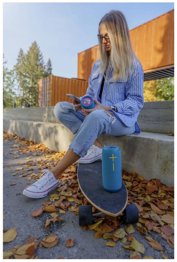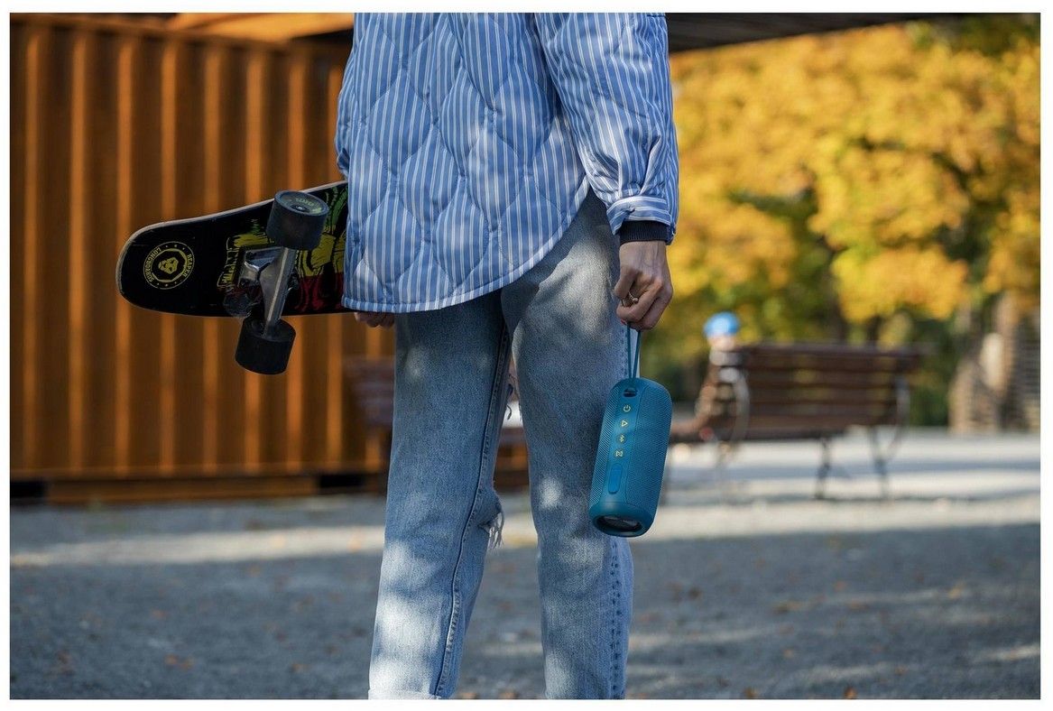 Zkoušet to asi nebudete, ale voděodolnost reproduktoru BBS 5500 je tak super (IPX7), že odolá tekutině, i když je půl hodiny ponořený metr pod hladinu! To v praxi znamená, že ho nezastaví ani průtrž mračen. Navíc je prostě trendy - potažený ocean modrou prémiovou tkaninou.