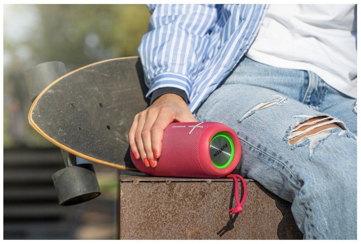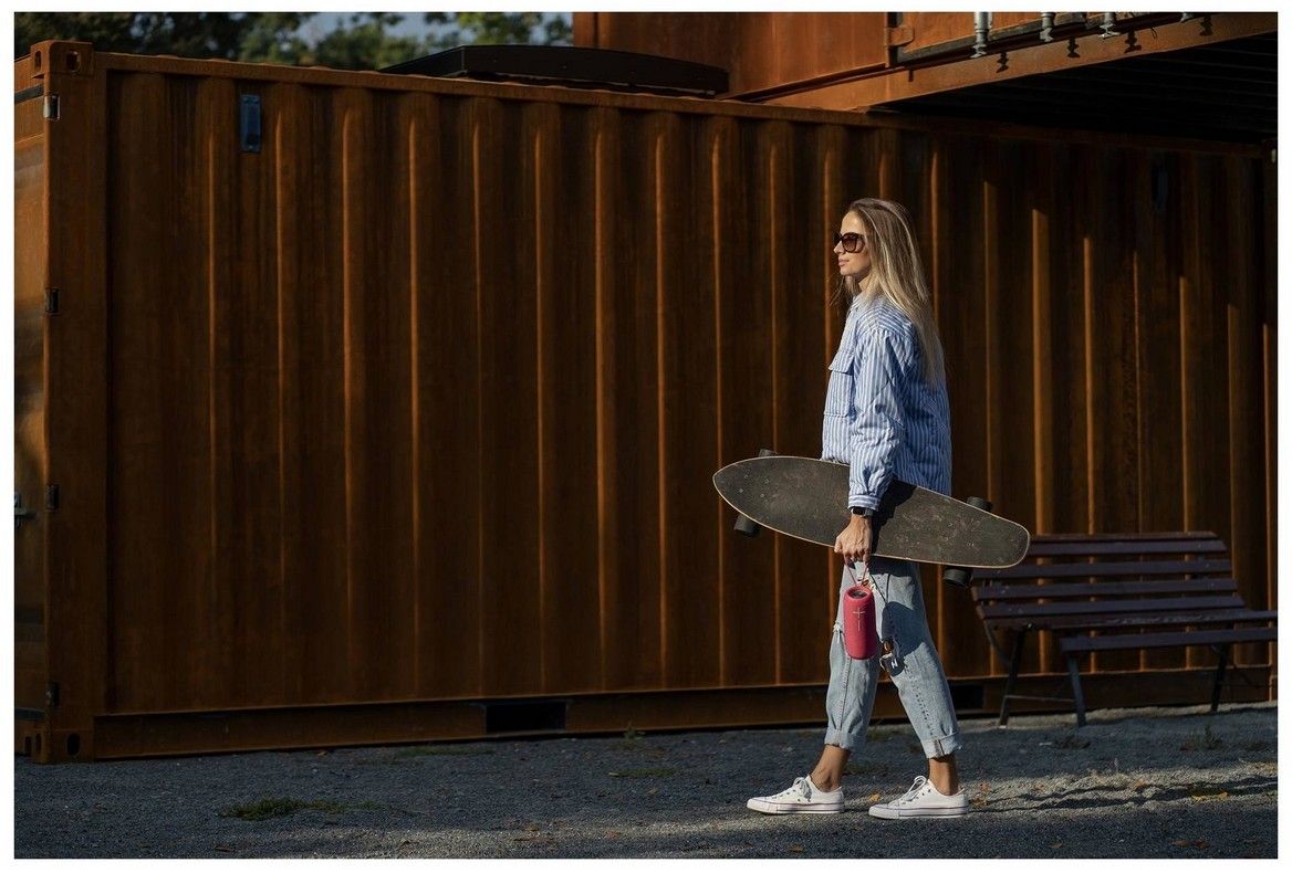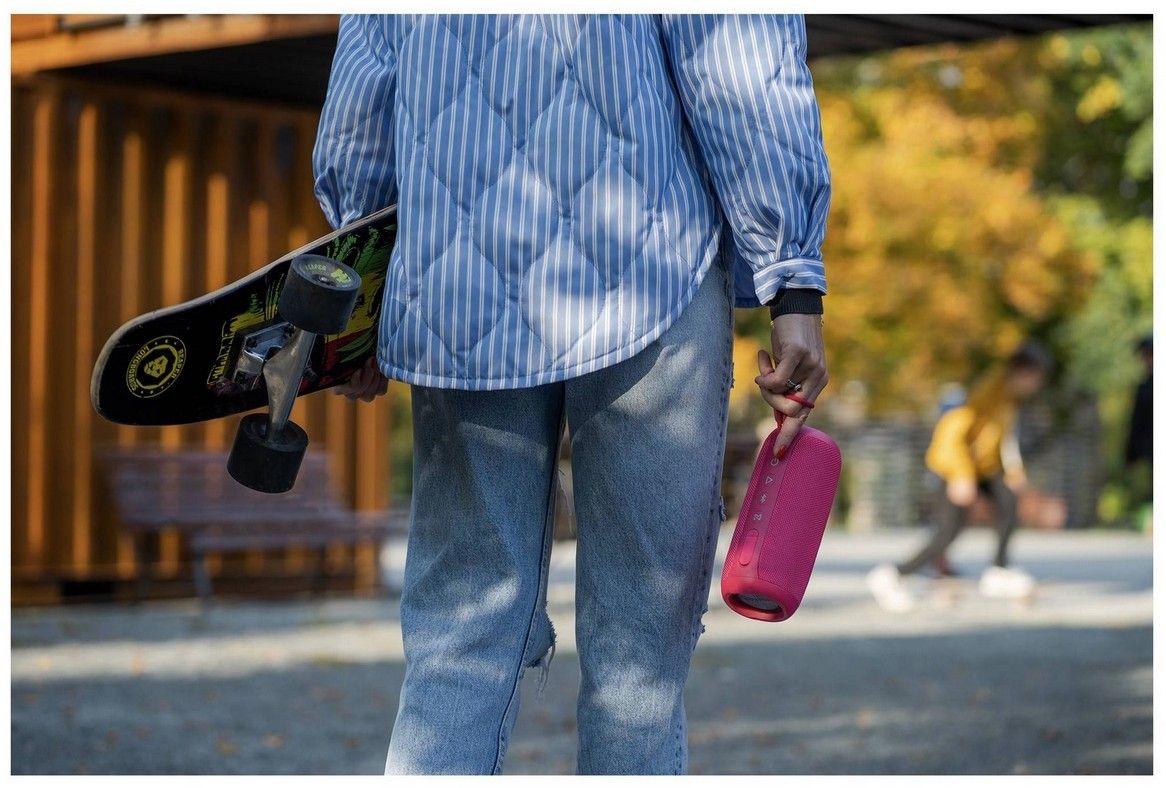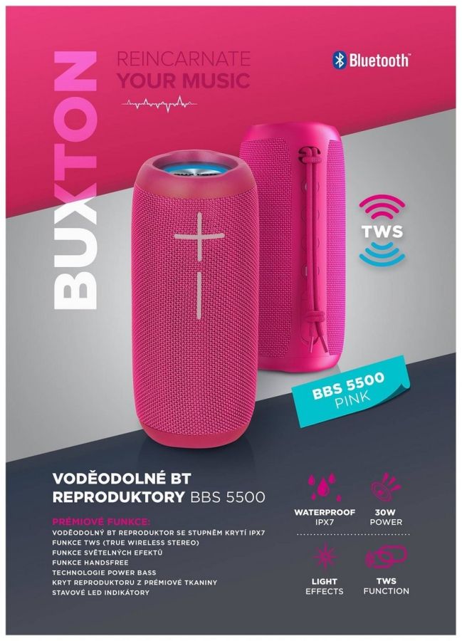 Zkoušet to asi nebudete, ale voděodolnost reproduktoru BBS 5500 je tak super (IPX7), že odolá tekutině, i když je půl hodiny ponořený metr pod hladinu! To v praxi znamená, že ho nezastaví ani průtrž mračen. Navíc je prostě trendy - potažený růžovou prémiovou tkaninou.