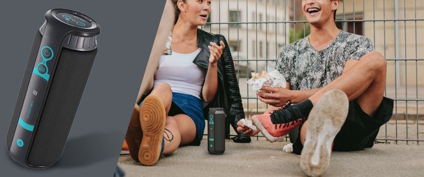 Bezdrátový Bluetooth reproduktor nové generace. 360 stupňové řešení zvuku se silnými basy, maximální výkon 24 W, inovativní dotykové a rotační ovládání a baterie s kapacitou 4000 mAh. Přizpůsoben pro venkovní použití a voděodolný podle IPX4. S vyměnitelnými barevnými kryty může mít každý den nový design.