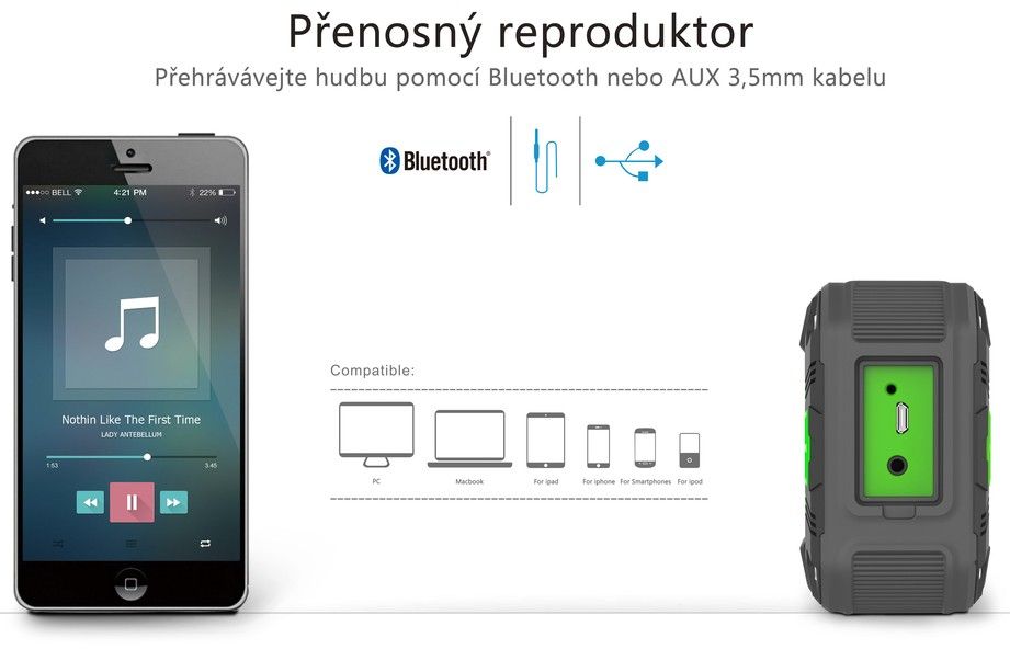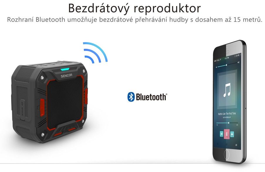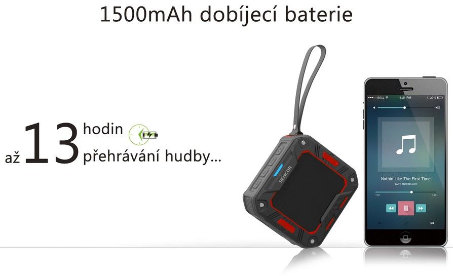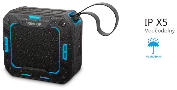 Bluetooth reproduktor má voděodolnou konstrukci s IPX5, zesilovač třídy D (pro bohatý zvuk s minimální spotřebou energie) a vestavěnou dobíjecí baterii.