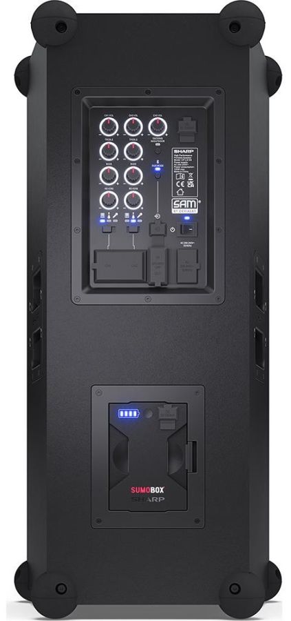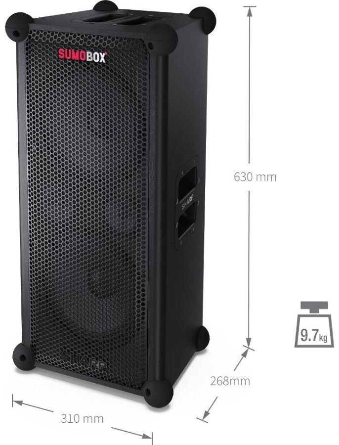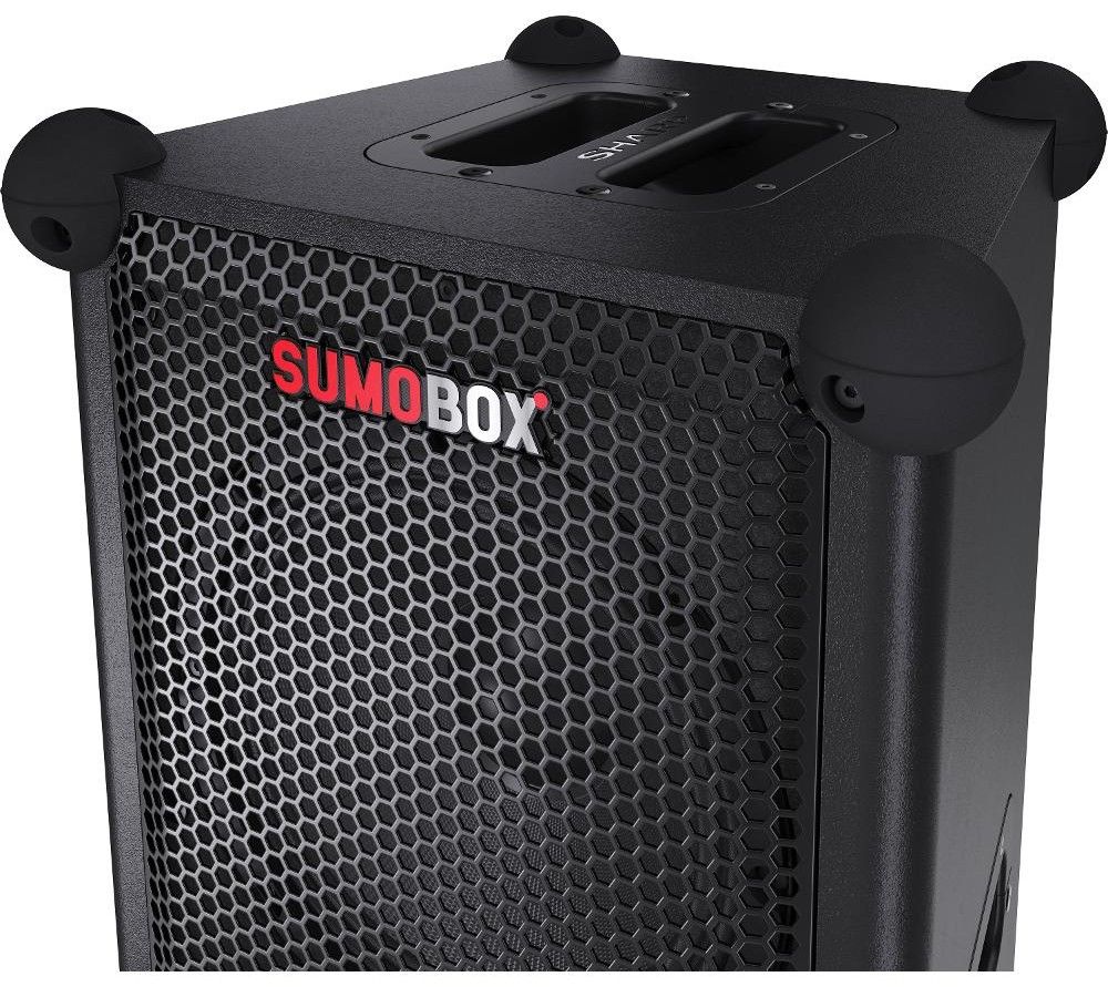 SumoBox je všestranný, přenosný reproduktor napájený vyjímatelnou/nabíjecí lithium-iontovou baterií a dokáže poskytnout až 105 dB čistého zvukového požitku.
