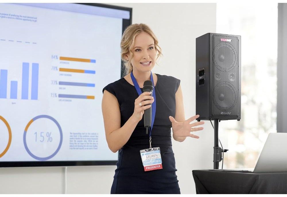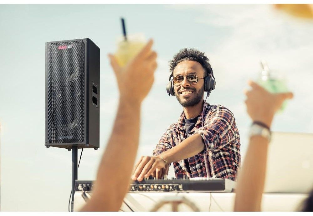 Přenosný reproduktor s vyjímatelnou/nabíjecí lithium-iontovou baterií, až 105 dB čistého zvuku, 2x USB (pouze nabíjení), 2x XLR/TRS 6,3mm combo a XLR/TRS 6,3mm combo.