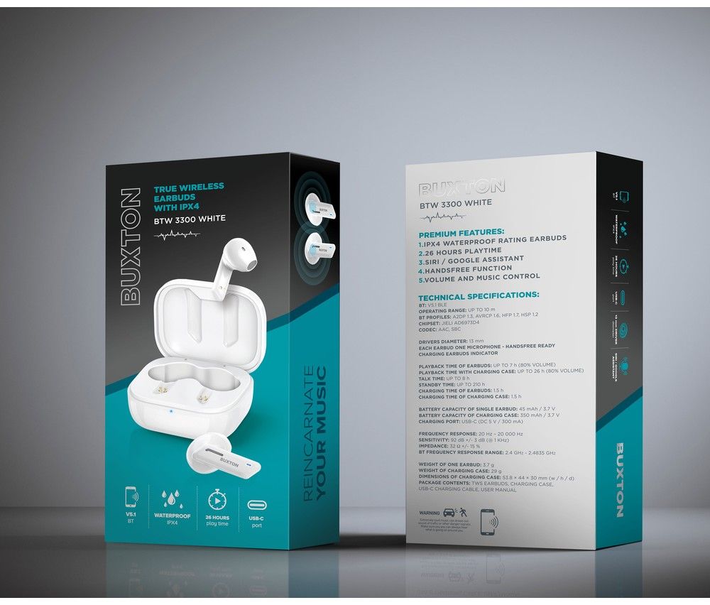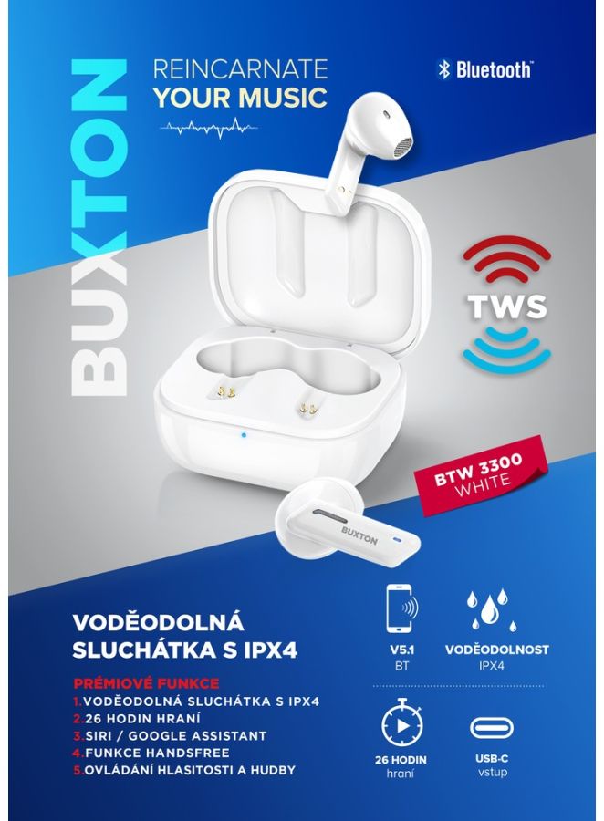 Výdrž je v dnešní době u sluchátek jedna z nejdůležitějších vlastností, tudíž ti bude v tohle ohledu rozhodně vyhověno. Nabíjecí pouzdro sluchátek BTW 3300 se postará celkově až o 26 h hraní. Se samotnými sluchátky máš postaráno o 7 h nepřetržité zábavy bez nutnosti dobíjení.