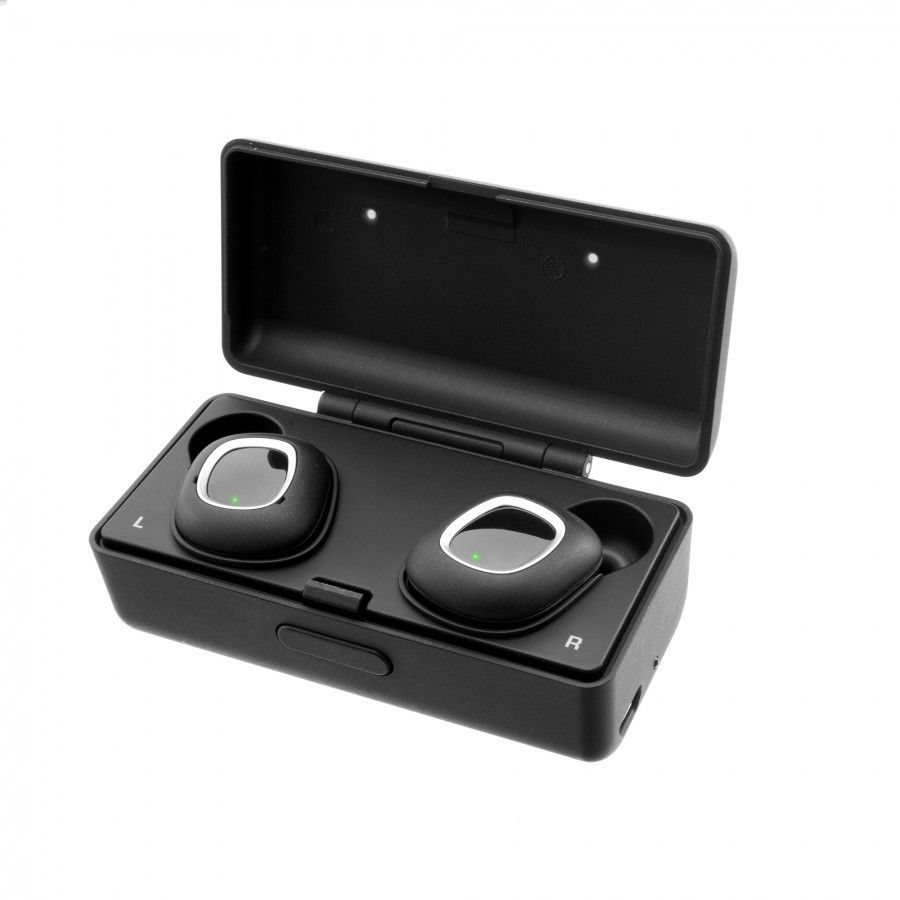 Moderní bezdrátová sluchátka se subwooferem, s výdrží 4 hodiny a rychlonabíjením do hodiny. Nabíjecí pouzdro.