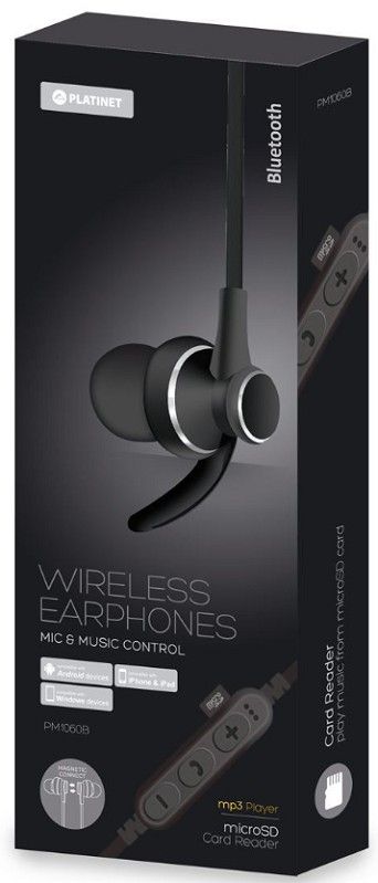 Bezdrátová sluchátka Platinet In-Ear Bluetooth se stanou spolehlivým společníkem každého aktivního jedince. Vysoce kvalitní membrány s průměrem 10 mm potlačují zvuky zvenčí, takže tóny plynoucí do vašich uší budou čisté a jasné. Disponují vestavěným mikrofonem pro snadné hands-free vyřizování telefonátů. Specifikem je integrovaná čtečka karet microSD, takže ke svému tréninku nepotřebujete telefon - stačí nahrát oblíbenou produkci na kartu a tu vložit do speciální čtečky umístěné na ovládacím panelu. Na jedno nabití dokážou fungovat až 4 hodiny a pokud je právě nepoužíváte, můžete si je upevnit kolem krku pomocí magnetických prvků umístěných na sluchátkách.
