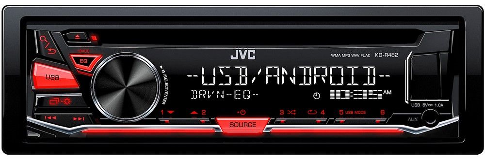 Autorádio s CD přehrává MP3/WMA/WAV/FLAC z USB. Má červené podsvícení tlačítek.