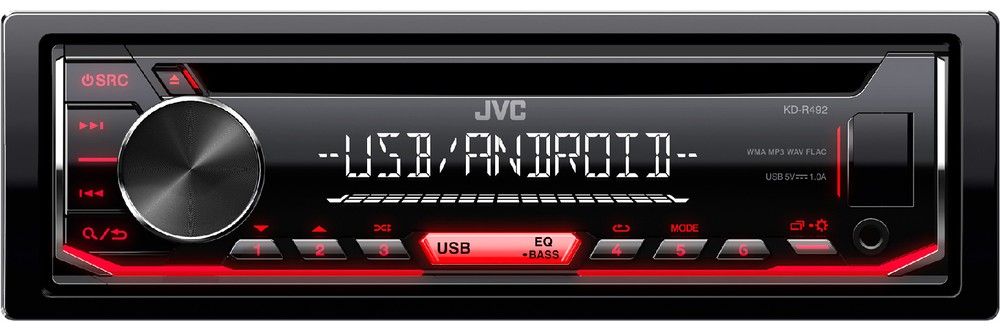 Autorádio s CD/USB přehrává MP3/WMA/WAV/FLAC z USB. Má červené podsvícení tlačítek.