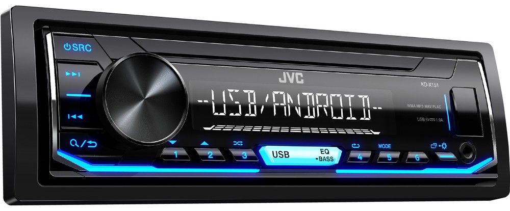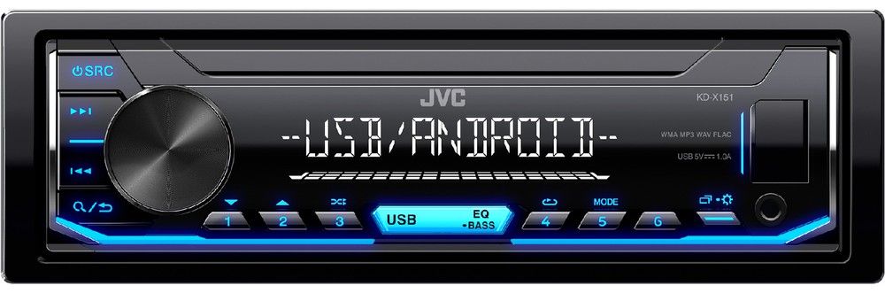 Autorádio s USB přehrává MP3/WMA/WAV/FLAC. Má modré podsvícení tlačítek.