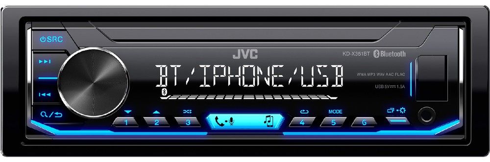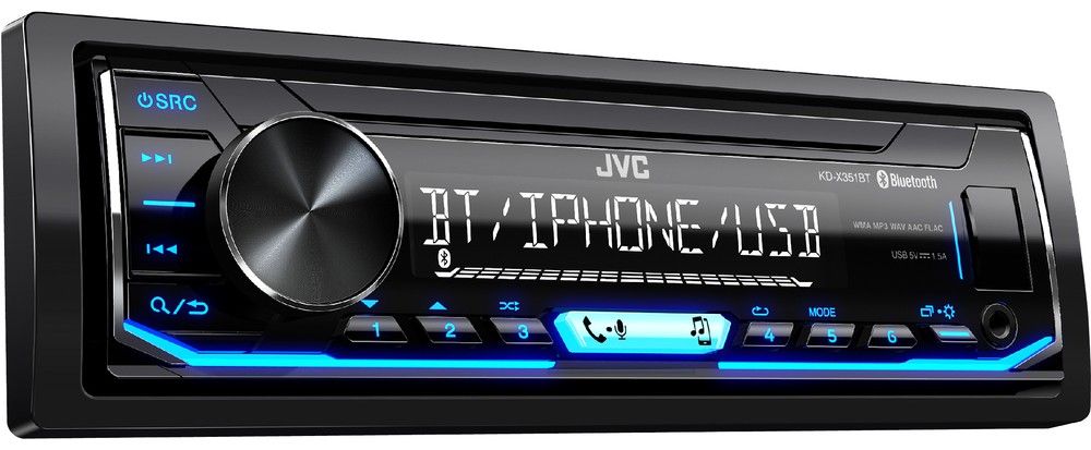 Autorádio s USB přehrává MP3/WMA/WAV/FLAC. Má modré podsvícení tlačítek.