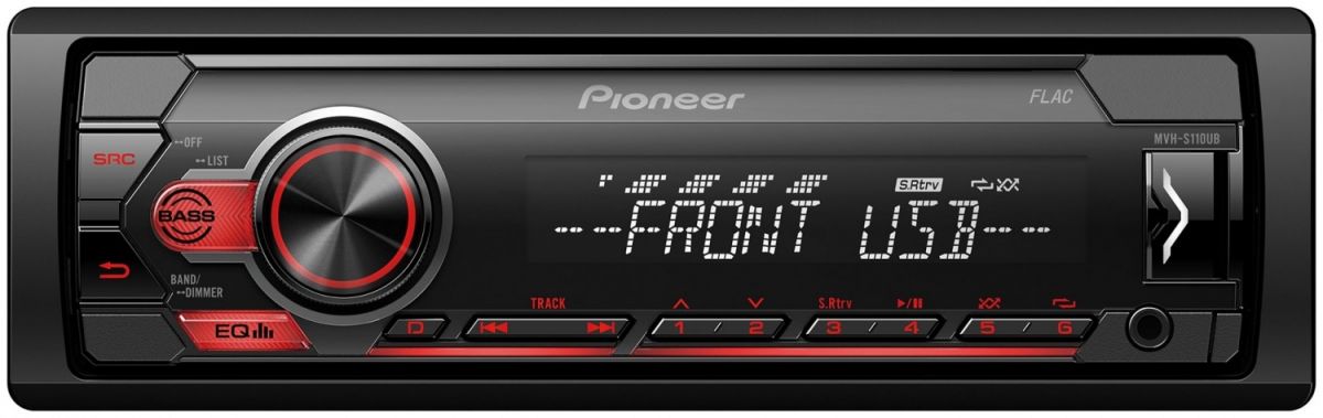 Autorádio MVH-S110UB s čelním vstupem USB, přehráváním MP3, WMA, WAV, FLAC
