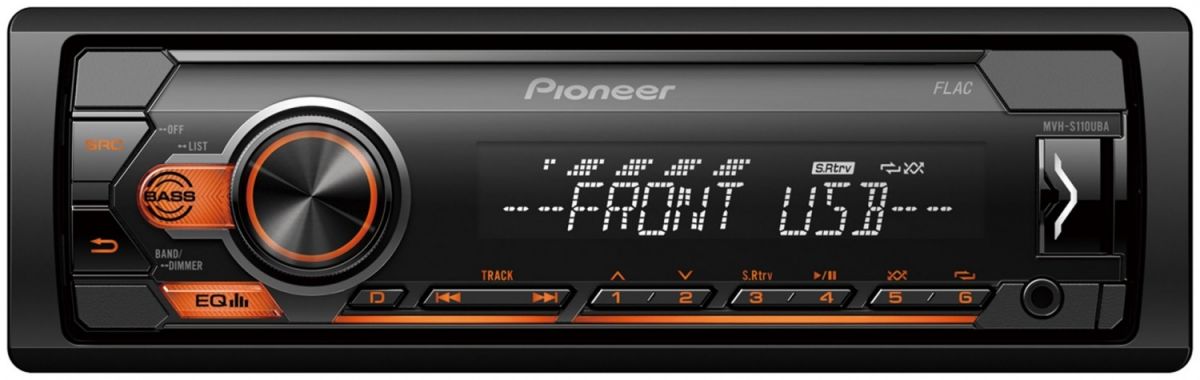 Autorádio MVH-S110UBA s čelním vstupem USB, přehráváním MP3, WMA, WAV, FLAC