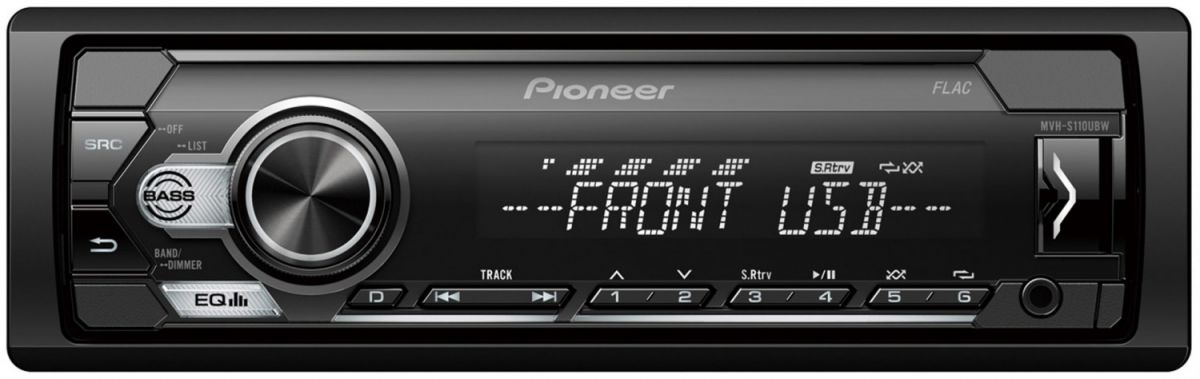 Autorádio MVH-S110UBW s čelním vstupem USB, přehráváním MP3, WMA, WAV, FLAC