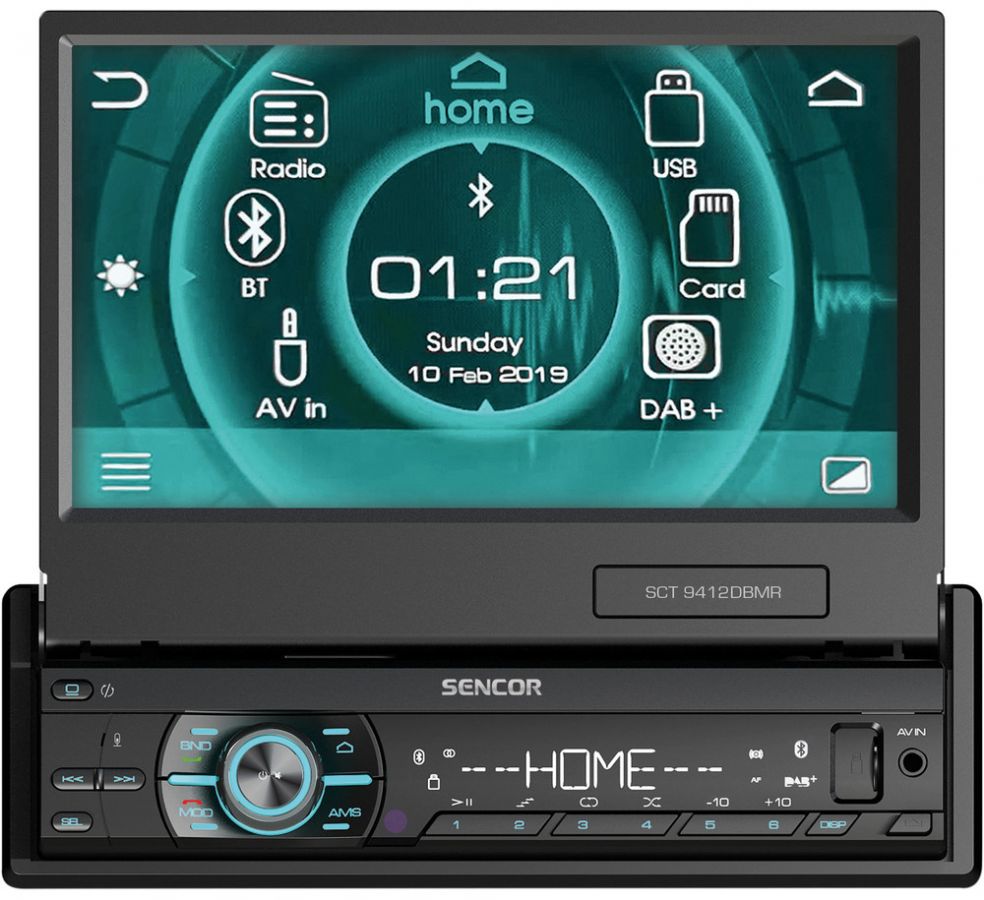 Autorádio s Bluetooth, USB a SD má 7“ dotykový TFT barevný LCD displej s širokoúhlým obrazem (16:9), plně motorizovaný mechanizmus ovládání monitoru a bluetooth 2.1 A2DP (přenos hudby a telefonních hovorů).