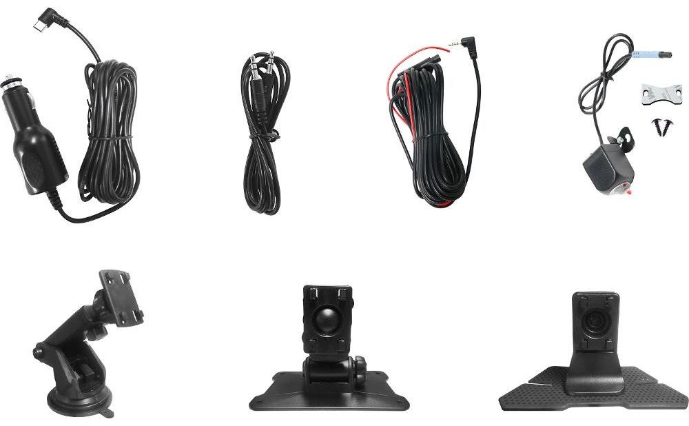 Obsah balení: 360 stupňový držák na okno, 2x držák na palubku (měkký a tvrdý), 12-24 V Adaptér, Jack 3.5 mm kabel, Couvací kamera