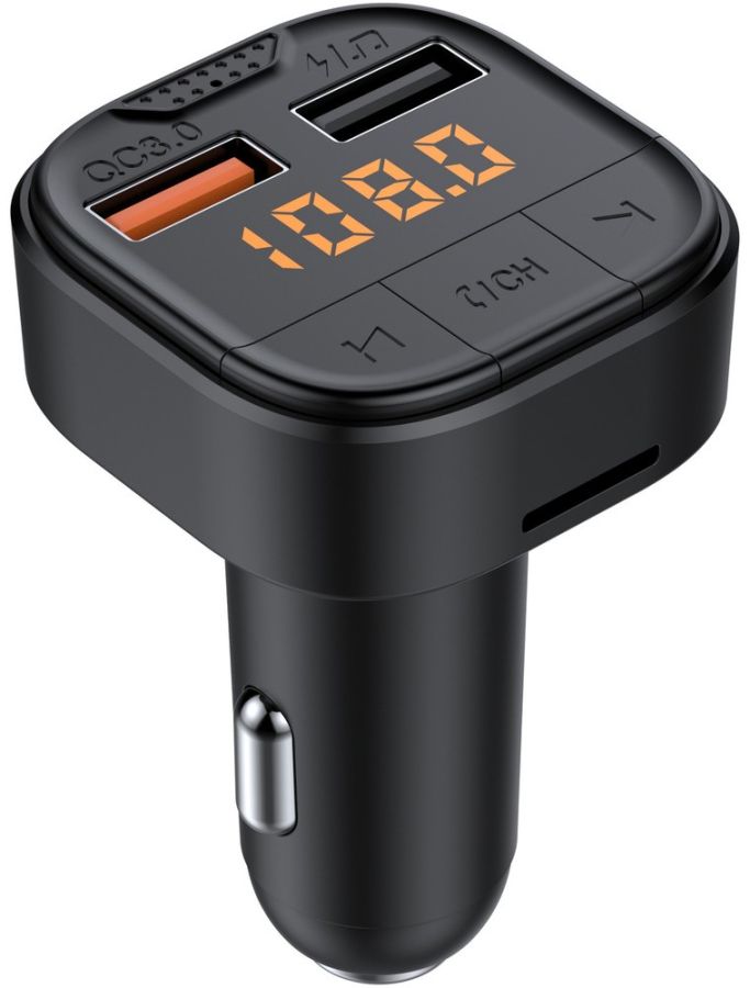 FM modulátor do auta podporuje Bluetooth, USB, MP3, WMA, FLAC, WAV a bezdrátové HandsFree. Má měřič napětí v napájecí soustavě automobilu, paměť poslední frekvence, čísla skladby a hlasitosti a 206 FM frekvencí.