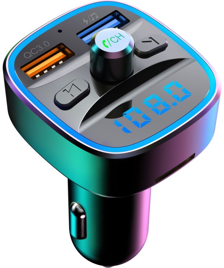 BT/FM Mp3 modulátor do auta podporuje Bluetooth, USB flash disk, TF kartu, MP3, WMA, FLAC, WAV a HandsFree. Má 2 USB konektory (1 pro hudbu ve formátu MP3, 1 pro QC3.0 nabíječku) a bezdrátové HandsFree.