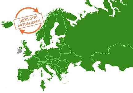 - Předinstalované mapy: Albánie, Andorra, Rakousko, Bělorusko, Belgie, Bulharsko, Bosna a Hercegovina, Kypr, Česká republika, Chorvatsko, Dánsko, Estonsko, Finsko, Francie, Německo, Gibraltar, Řecko, Maďarsko, Island, Ostrov Man, Itálie, Kazachstán, Lotyšsko, Lichtenštejnsko, Litva, Lucembursko, Severní Makedonie, Malta, Moldavsko, Monako, Černá Hora, Holandsko, Norsko, Polsko, Portugalsko, Rumunsko, Rusko, San Marino, Srbsko, Slovensko, Slovinsko, Španělsko, Švédsko, Švýcarsko, Ukrajina, Spojené království, Vatikán.