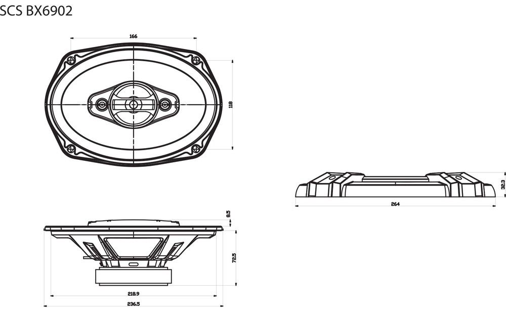 Oválné 4-pásmové autorepro o rozměrech 165x235mm, impedancí 4Ohmy a maximálním výkonem 105W.
