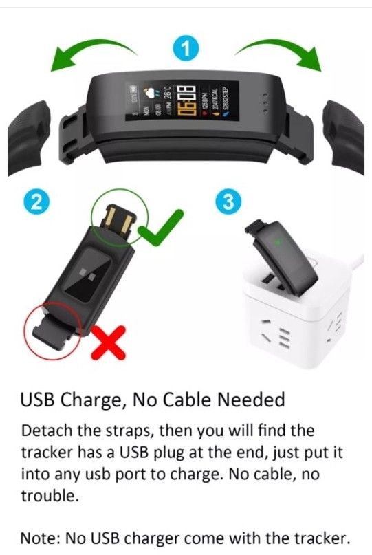 Bluetooth fitness náramek se snímačem srdečního tepu a krevního tlaku.