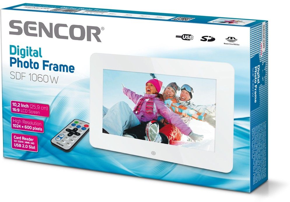 Digitální fotorámeček má 10,2-palcový (25,9 cm) LCD displej 16:9, čtečku karet 3v1 (MMC/SD/SDHC/MMC), Plug & play USB 2.0 slot a podporu USB paměťových médií.