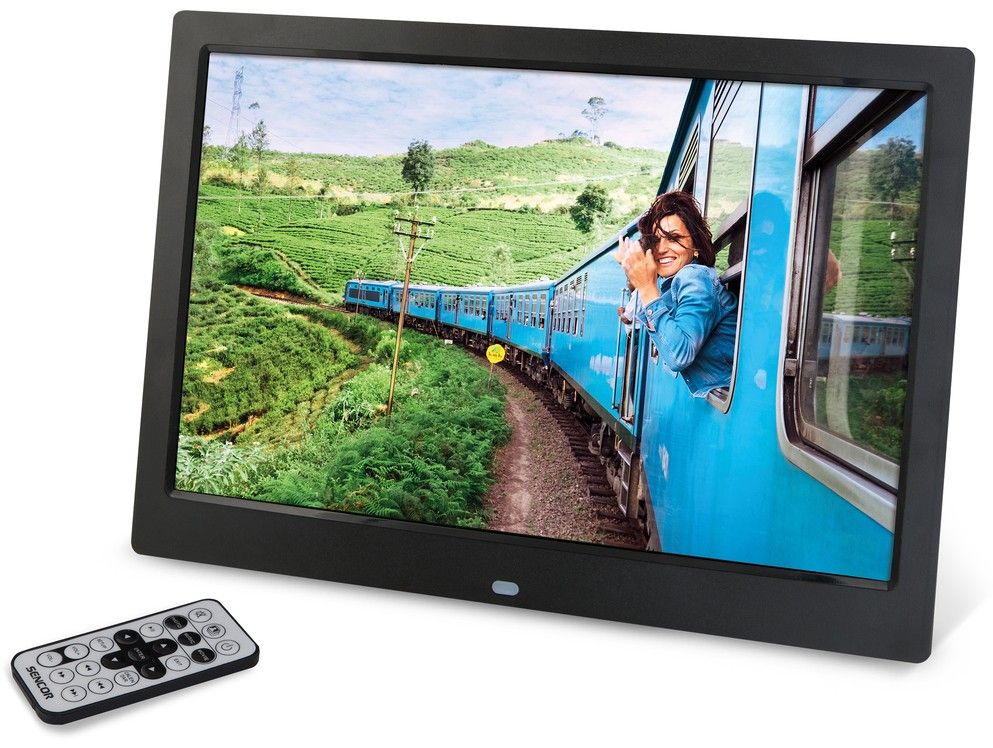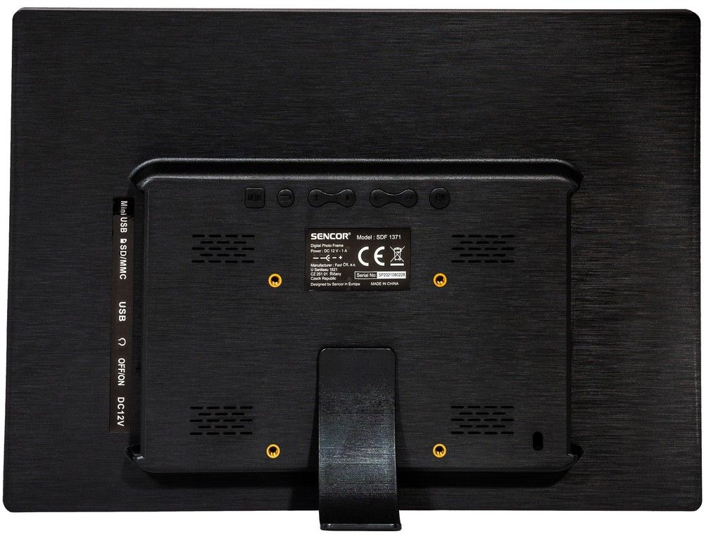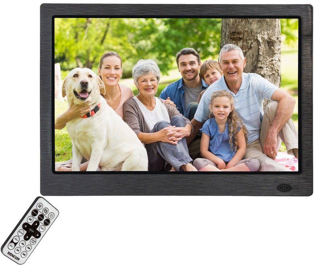 Digitální fotorámeček má displej 13,3" (33,8 cm) 16:9 TFT LED, čtečku karet (SD/SDHC/MMC) a dálkové ovládání.