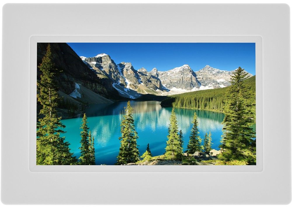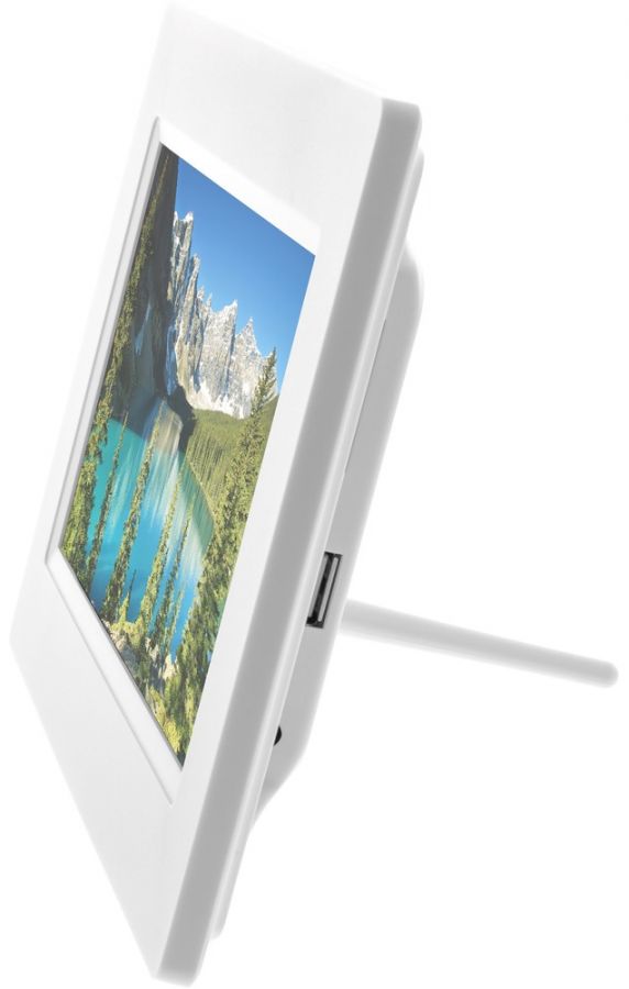 Digitální fotorámeček má 7-palcový (17,8 cm) LCD displej 16:9, čtečku karet 3v1 (SD/SDHC/MMC), USB 2.0 slot a podporu USB paměťových médií.