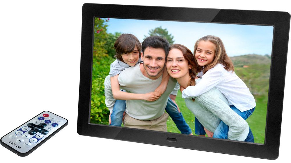 Digitální fotorámeček má 8-palcový (20,3 cm) 16:9 IPS displej, postupné promítání obrázků a čtečku na SD/SDHC/MMC karty.